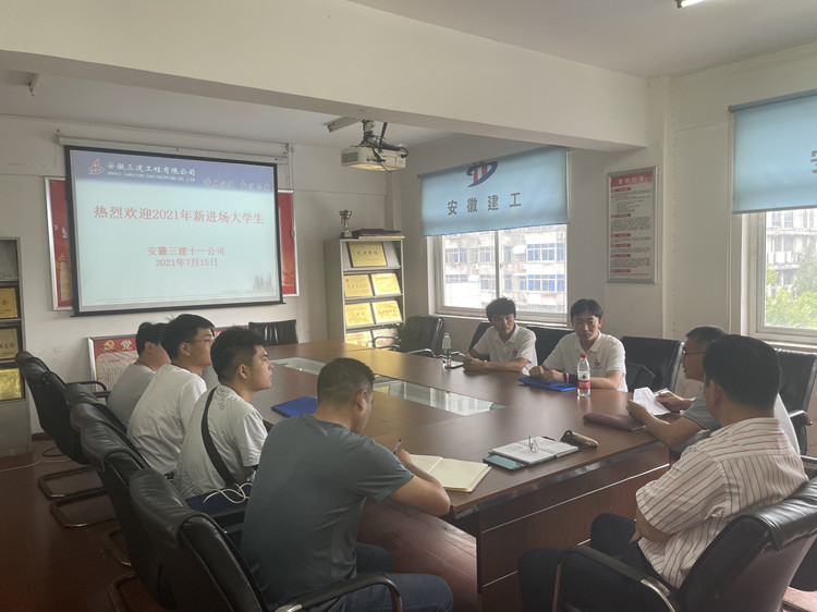7月15日下午,裝飾公司在會議室舉辦了2021屆新進場大學生見面會。裝飾公司領導班子以及科室負責人、項目技術負責人參加會議。