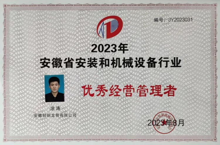近日,安徽省安裝和機(jī)械設(shè)備協(xié)會(huì)對(duì)獲得2023年安徽省安裝工程優(yōu)質(zhì)獎(jiǎng)、省建筑施工機(jī)械租賃企業(yè)綜合信用評(píng)價(jià)、優(yōu)秀經(jīng)營(yíng)管理者、項(xiàng)目經(jīng)理等單位和個(gè)人進(jìn)行了表彰,建工三建涂濤和顧超分別榮獲“優(yōu)秀經(jīng)營(yíng)管理者”和“優(yōu)秀項(xiàng)目經(jīng)理”榮譽(yù)稱(chēng)號(hào)。